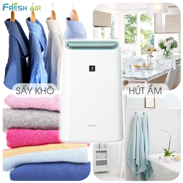 – Máy hút ẩm Sharp còn có chức năng hong khô quần áo rất nhanh. Không cần phải mua thêm tủ sấy nữa. Thật vô cùng tiện lợi.