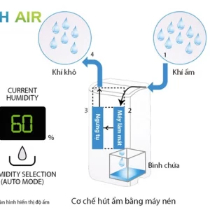 – Sản phẩm được trang bị tính năng hút ẩm hiệu quả sẽ loại bỏ được phiền toái không mong muốn về độ ẩm cao như: không bênh về đường hô hấp, không còn trơn trượt và không hư hỏng đồ điện tử.