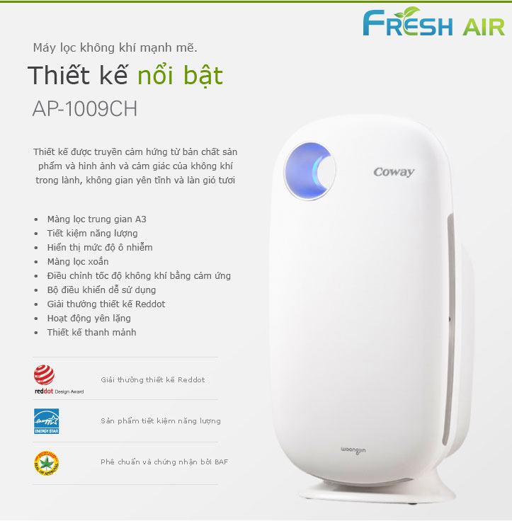 Coway AP-1009CH thương hiệu Hàn quốc ứng dụng công nghệ màng lọc cao cấp giúp diệt khuẩn và khử mùi hiệu quả – Made in Korea – Bảo hành chính hãng 12 tháng toàn quốc – Giao hàng toàn quốc – Liên hệ: 0965 977 621 MÁY LỌC KHÔNG KHÍ COWAY AP-1009CH – Diện tích lọc: 33 m² – Màng…