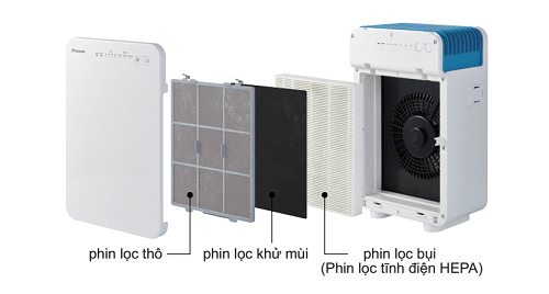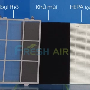 Hệ thống phin lọc 3 cấp gồm phin lọc thô, phin lọc khử mùi và phin lọc bụi (Phin lọc tĩnh điện HEPA) đảm bảo lọc không khí nhanh chóng và triệt để