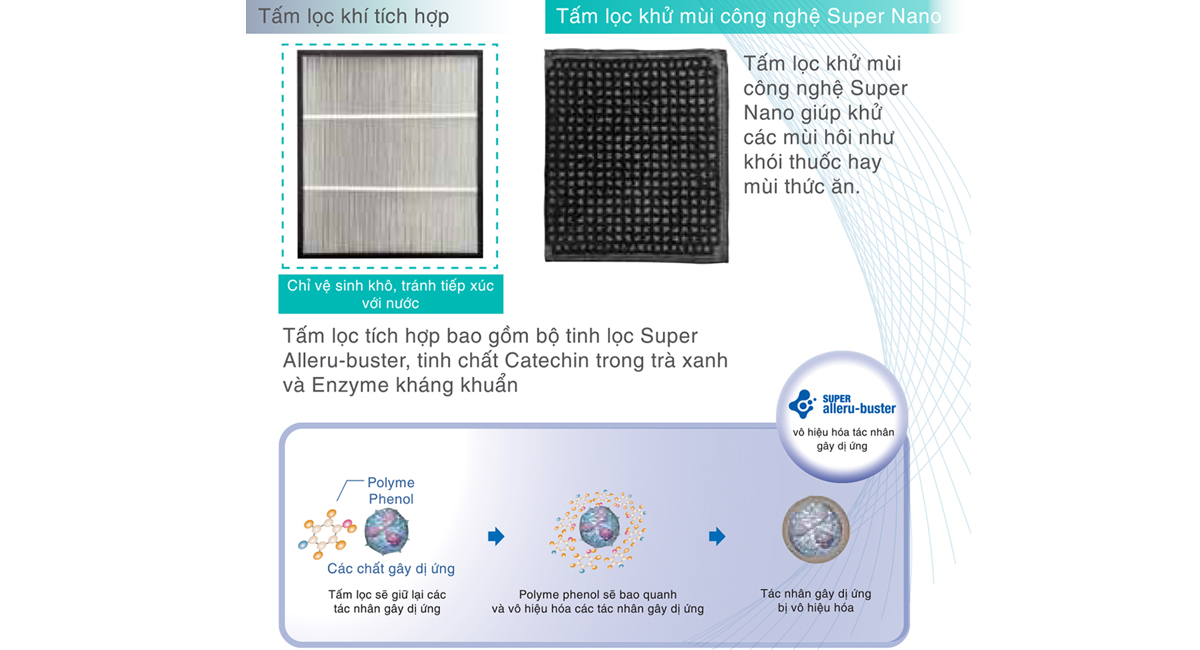| Tuổi thọ bộ lọc | HEPA 3 năm, Khử mùi 3 năm |
