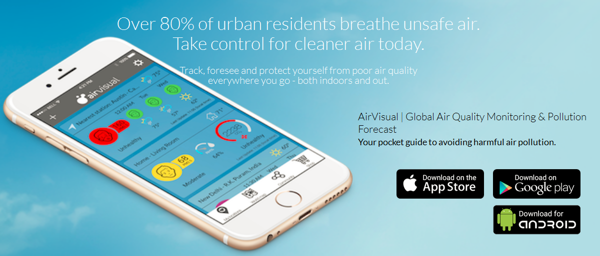 Không khí bị ô nhiễm không phải mắt thường chúng ta sẽ có thể nhìn ra được. Ngoài những khói bụi ra còn có những luồng không khí cực kì độc hại mà chúng ta không hề biết. Hãy tải ứng dụng kiểm tra mức độ ô nhiễm không khí có tên gọi là AirVisual về điện thoại của bạn ngay.